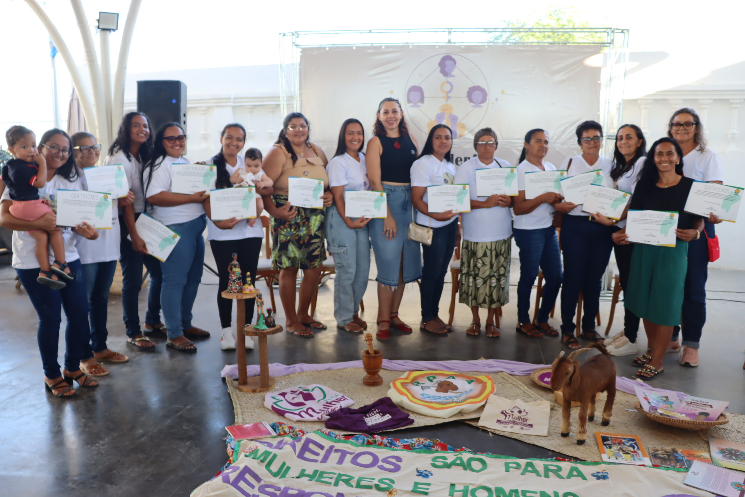 O pátio da Feira Agroecológica, em Juazeiro (BA), foi o palco da celebração de encerramento do Projeto EmpoderA+: Voz e Poder, na última sexta-feira (8). O evento reuniu as participantes dos núcleos de Alto da Aliança, Quidé e Massaroca, além de representantes da Rede Mulher dos municípios de Sento Sé e Curaçá, e de entidades parceiras.