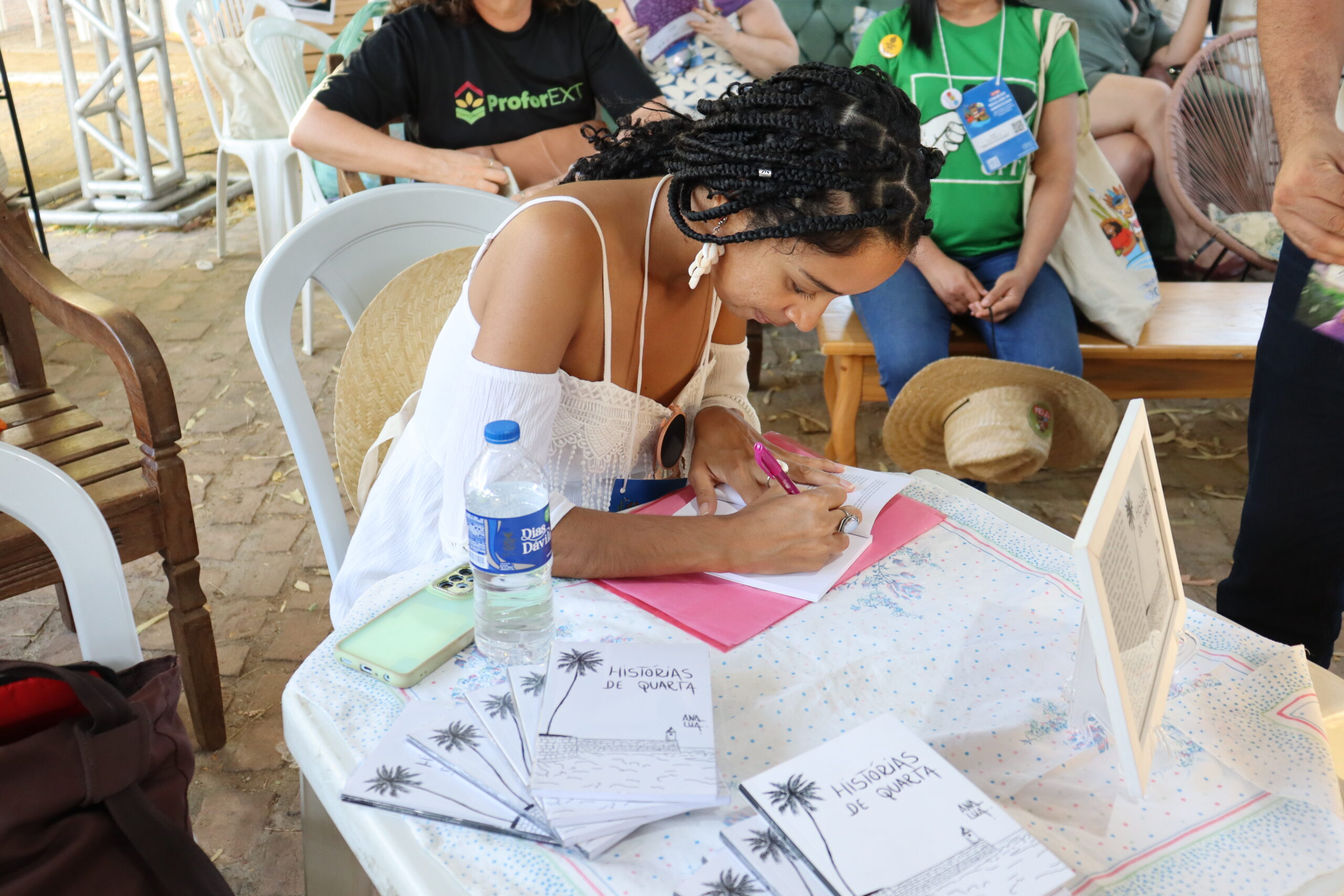 Completando o trio de obras, foi apresentada “Tecendo redes de Economia Solidária com Mulheres Rurais”, escrita por Seomária Costa, extensionista rural e pesquisadora que atua no Vale do Jiquiriçá e no Baixo Sul da Bahia.